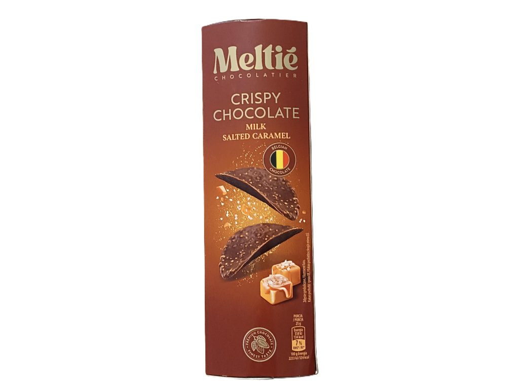 Tyto extra tenké čokoládové plátky představují luxusní pochoutku v balení 125 g, která spojuje tři oblíbené chutě. Vychutnejte si jemnou a intenzivní čokoládu (často mléčnou nebo hořkou) doplněnou o osvěžující, jiskřivou příchuť pomeranče a moderní, sofistikovanou notu slaného karamelu. Plátky jsou ideální k rychlému mlsání, k horké kávě nebo čaji, a skvěle se hodí jako elegantní dárek.