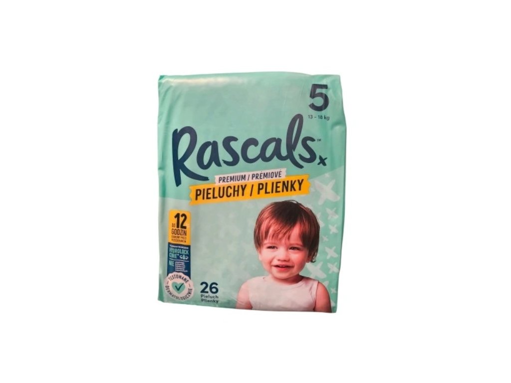Pleny Rascals velikosti 5 jsou určeny pro větší batolata s hmotností 13 až 18 kg. Nabízí až 12 hodin spolehlivé ochrany díky pokročilému Hydrolock™ jádru a jsou vybaveny hlubokou kapsou pro zachycení nečistot. Jsou hypoalergenní, bez parfemace a latexu, a mají extra pružný vysoký pás pro pohodlí a těsné přilnutí, ideální pro děti, které jsou neustále v pohybu. Balení obsahuje 26 kusů.