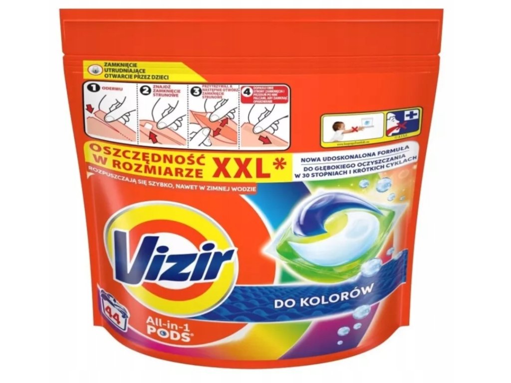 Prací kapsle Vizir All-in-1 PODS v balení 44 kusů nabízejí maximální pohodlí a účinnost praní. Každá kapsle s více komorami je předem odměřená dávka silného pracího gelu, která se stará o komplexní péči o prádlo.